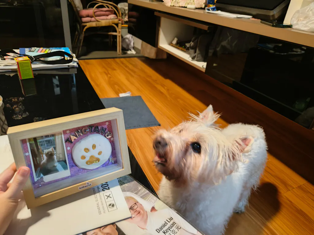 I love having little snippets of my dog and this is such a cute one. They helped me choose a good photo and the product came pretty quickly. I love that it was addressed to my dog😂 Definitely a lovely keepsake to have on your shelf :)